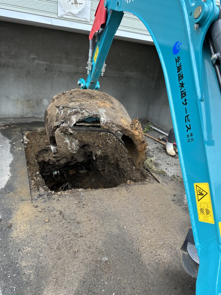 調査の結果、古いコンクリート製のマスが除去されることなく、そのまま埋められていたようで、