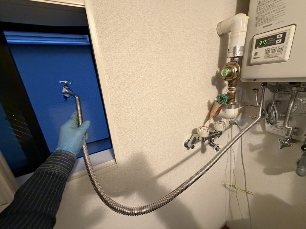 ボイラーにつながせてもらい、お湯を借りて洗浄する方法を取りました🔥